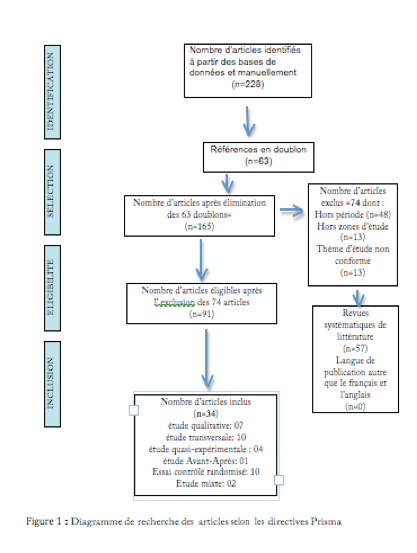 Afin de garantir l’inclusion de toutes les informations pertinentes dans l’analyse, et pour documenter le processus de sélection, le diagramme de flux PRISMA était utilisé.